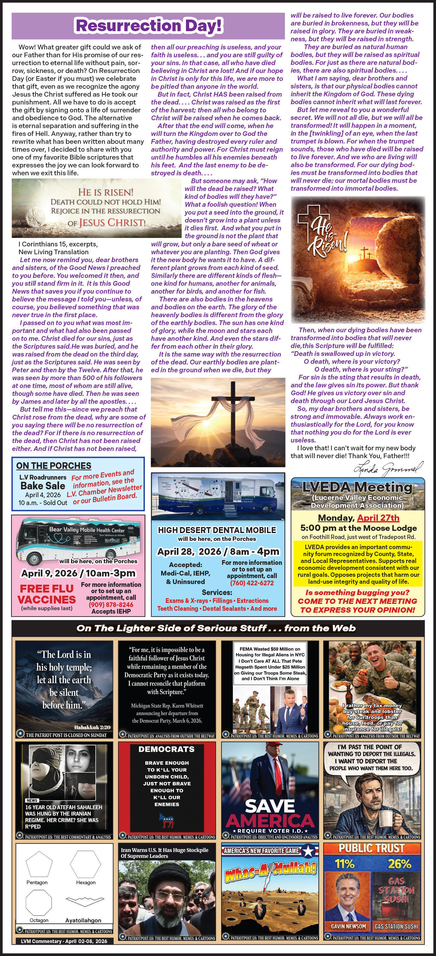Commentaries from the Lucerne ValleyMarket & Hardware weekly Advertiser April 2, 2026 -- Resurrection Day