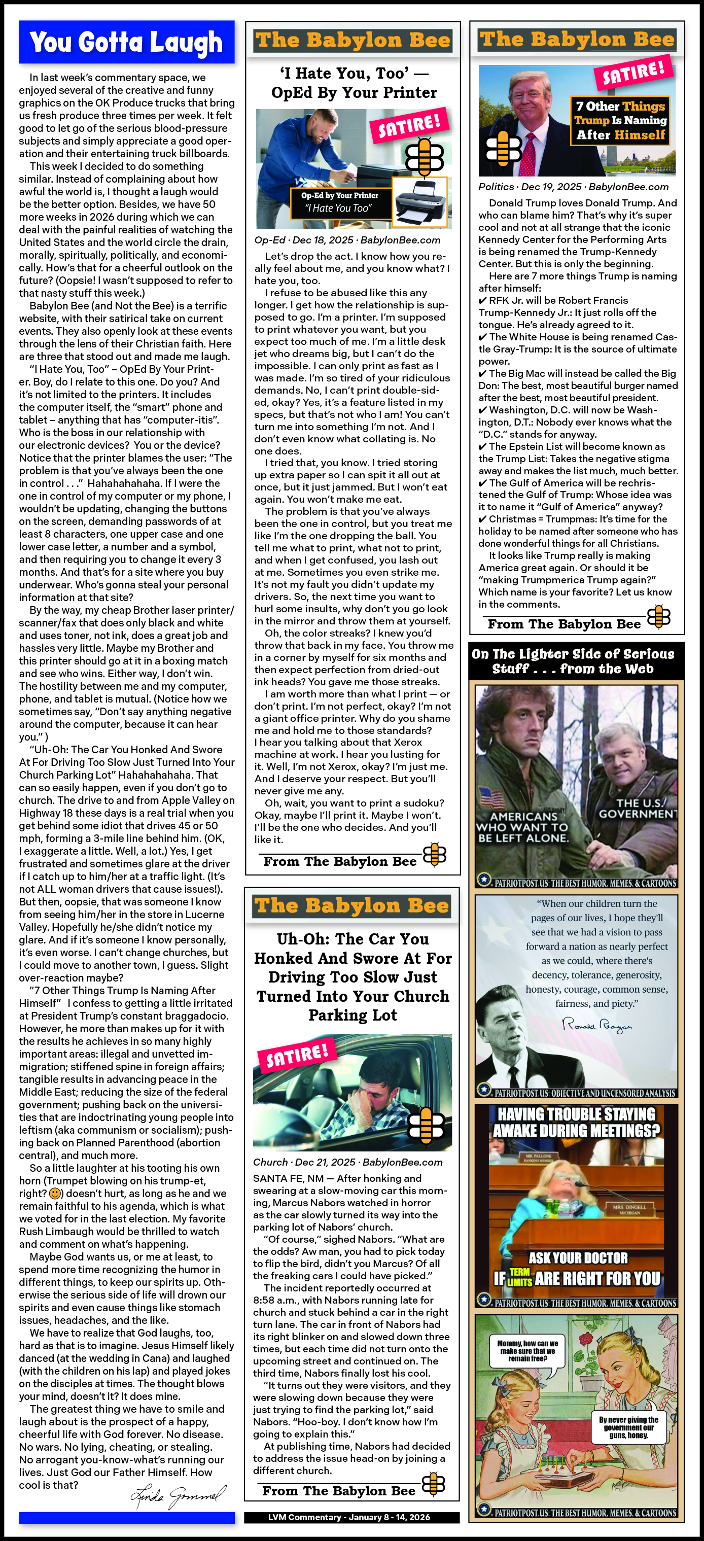 Commentaries from the Lucerne ValleyMarket & Hardware weekly Advertiser January 8, 2026 -- You Gotta Laugh January 1, 2026 -- PRODUCE! and more...