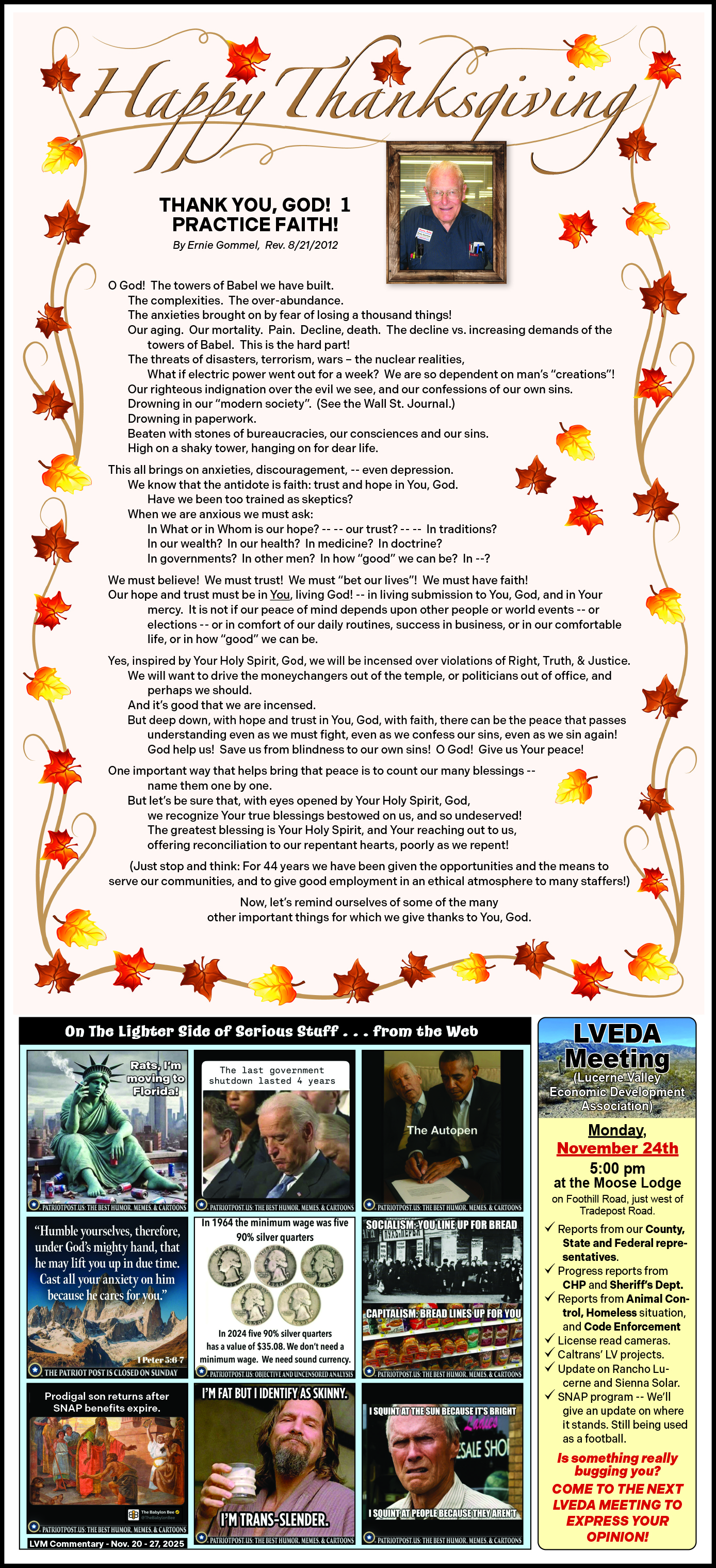 November 20, 2025 -- THANK YOU GOD! 1 -- PRACTICE FAITH!