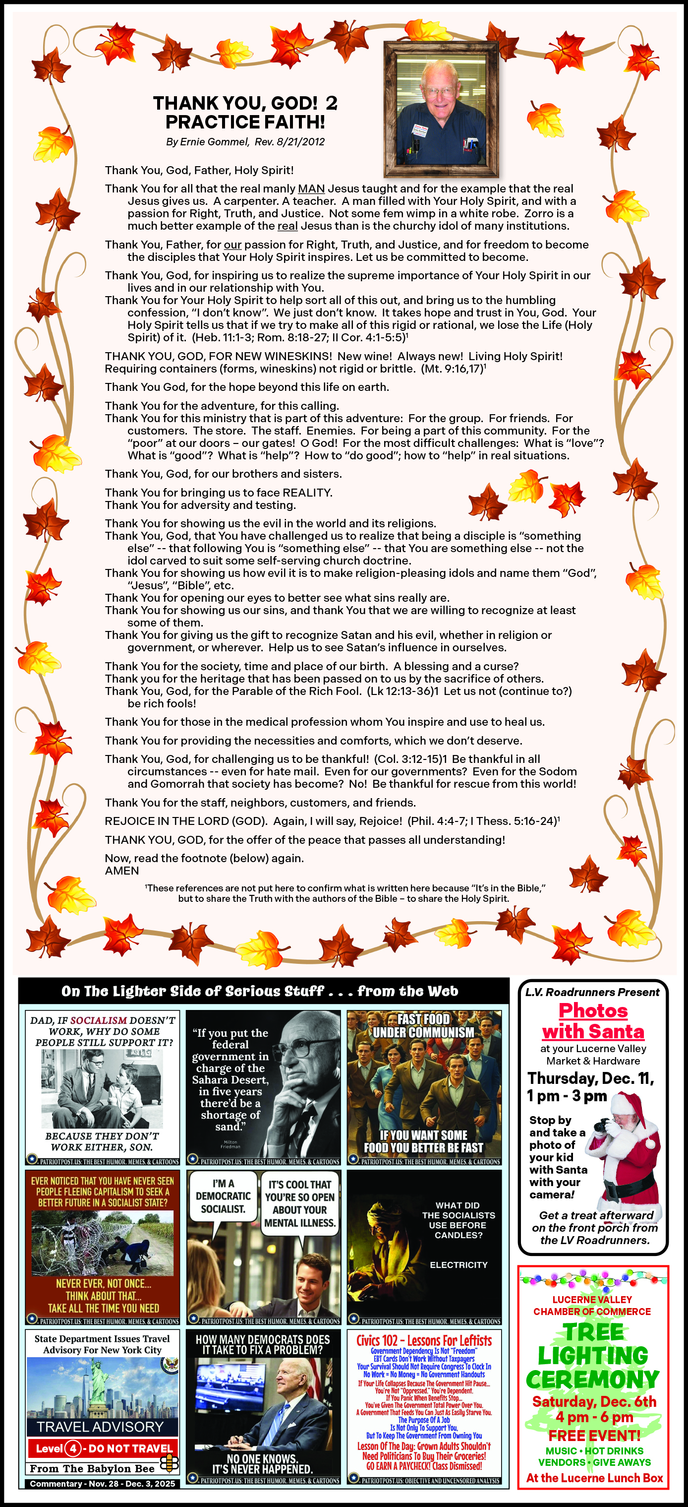 November 28, 2025 -- THANK YOU GOD! 2 -- PRACTICE FAITH!